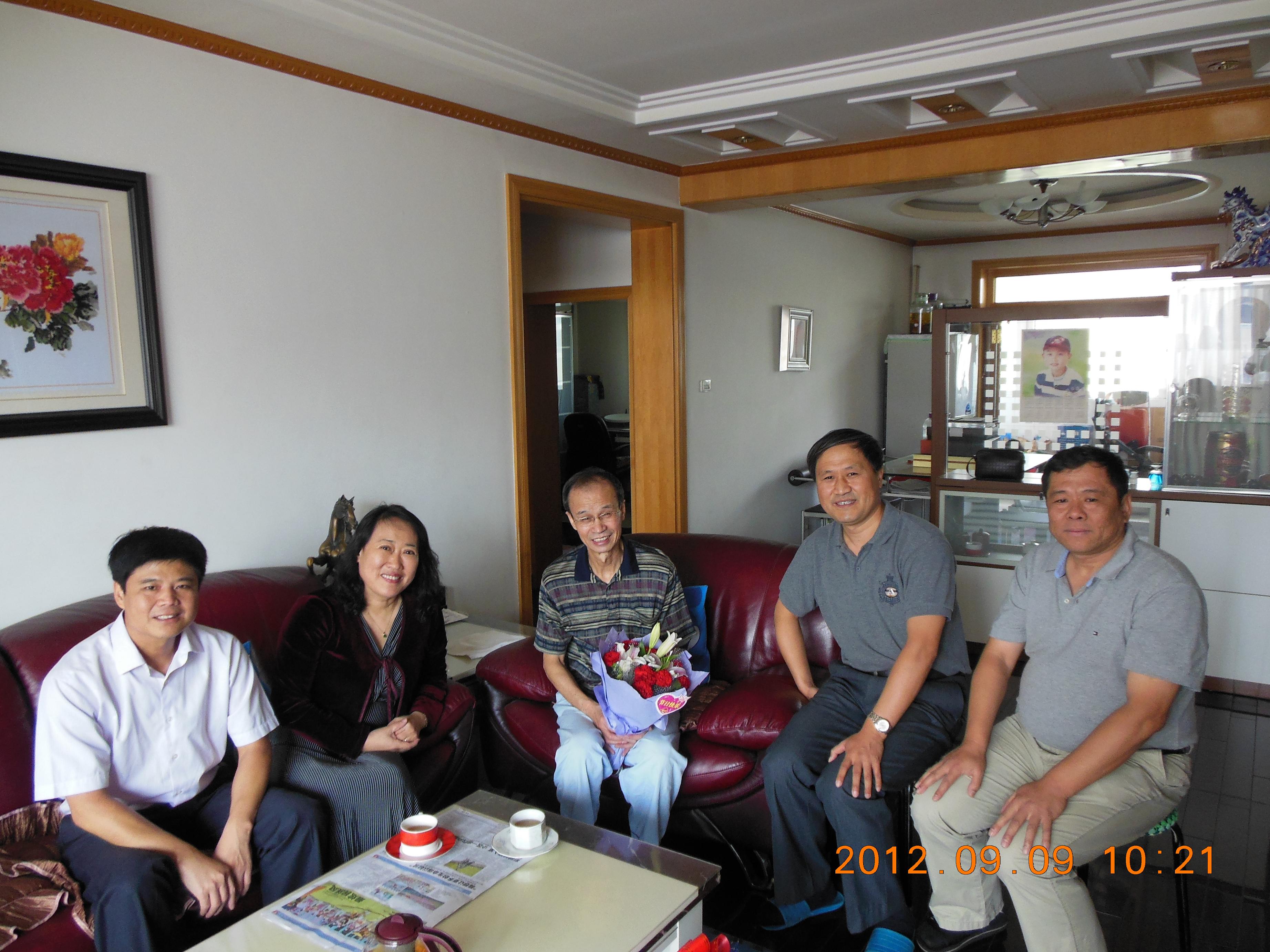向两位老教授敬献鲜花,并致以诚挚的节日问候。
