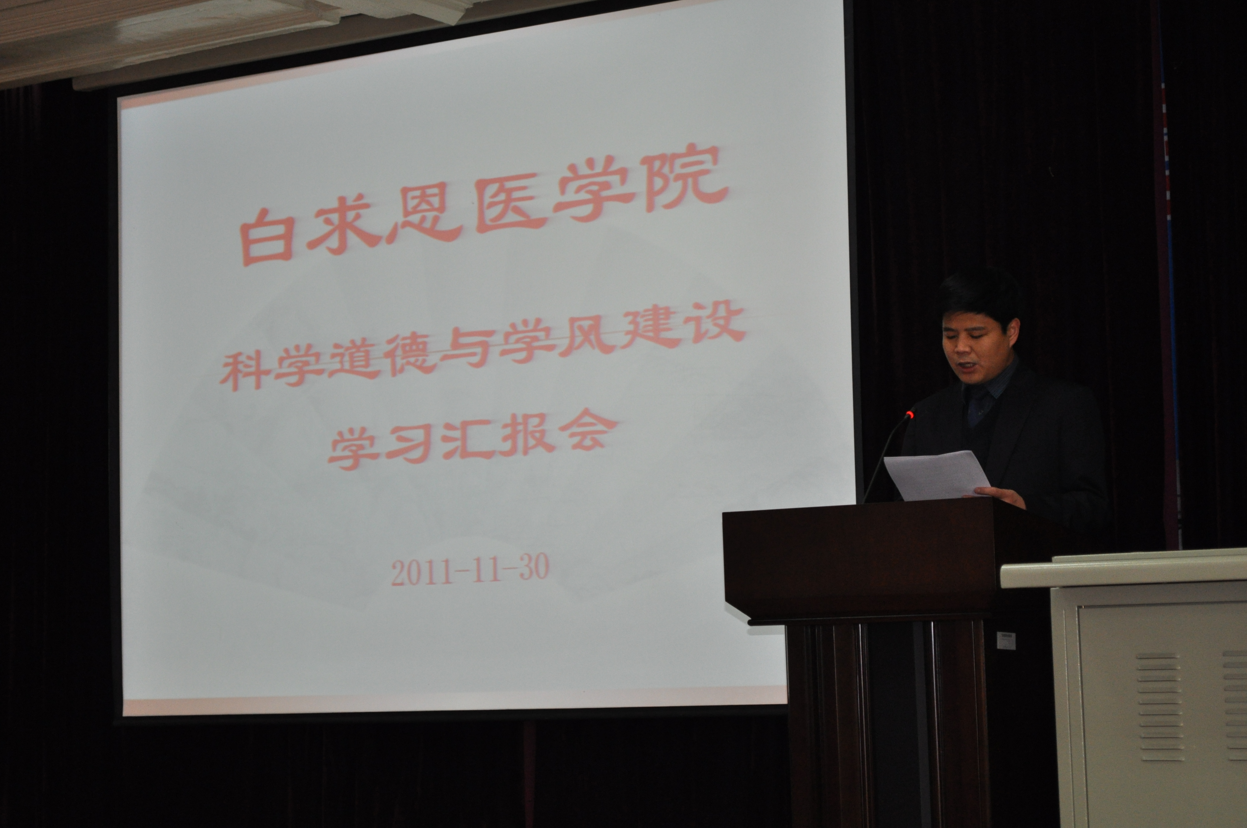“科学道德和学风建设系列活动”进行简要总结,强调了开展本次活动的重要意义,并提出具体要求。要求此项工作要建立长效机制,保证教育活动的延续性,明确导师职责的同时,调动研究生的积极性,通过发挥研究生党群组织的作用,提高研究生自觉抵制学术不端行为的能力。
