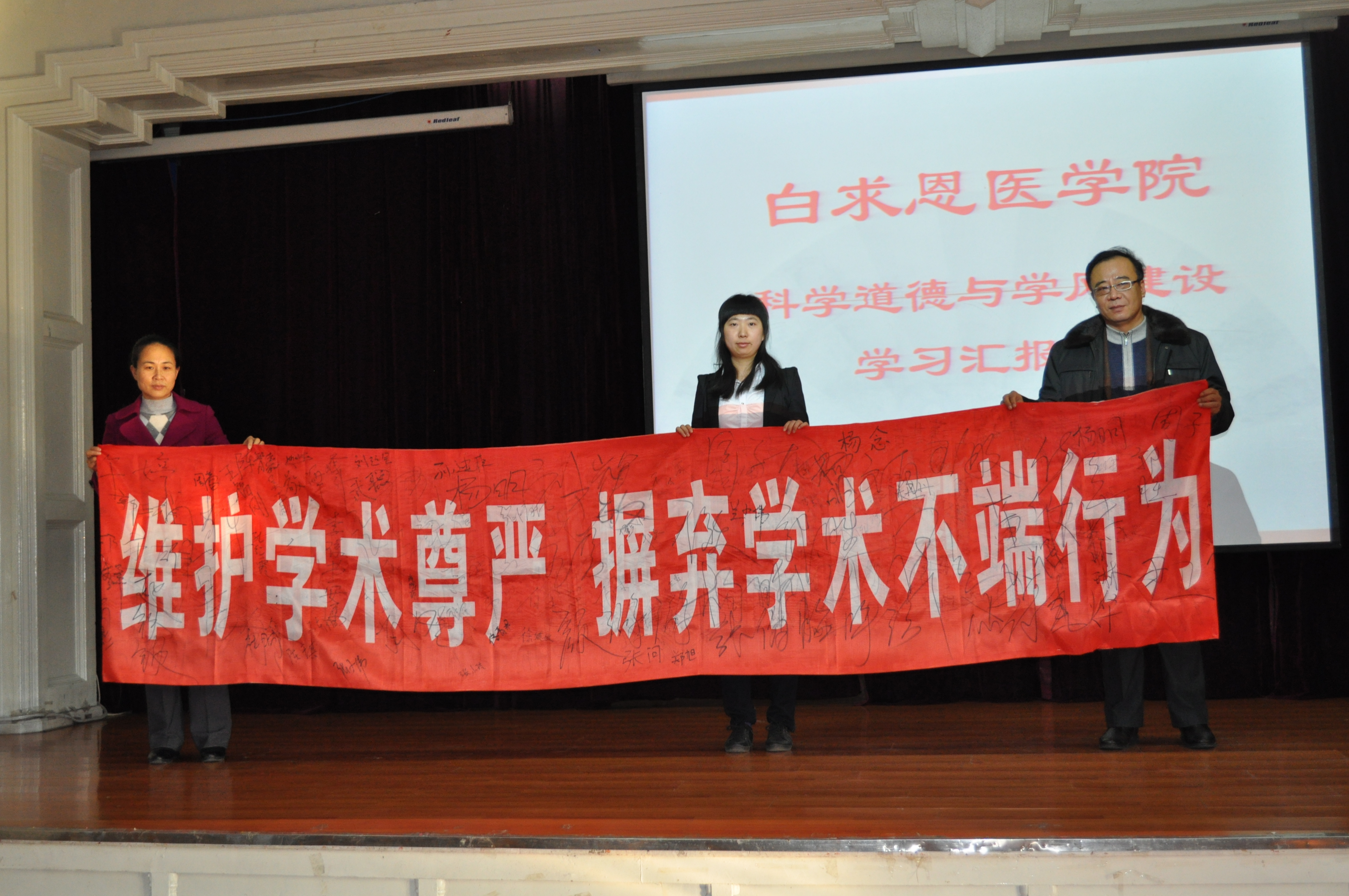 接收了全体研究生亲笔签名的“遵守学术规范、坚守学术诚信、完善学术人格、维护学术尊严,摒弃学术不端行为”条幅。