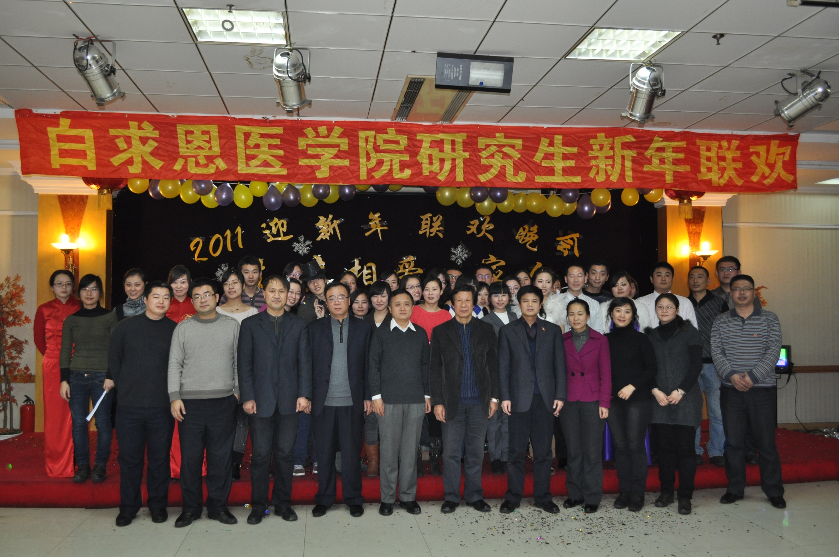的研究生一起参加了联欢晚会。2010级硕士研究生徐之会、钟丽颖、钟华、刘尊严主持了晚会。