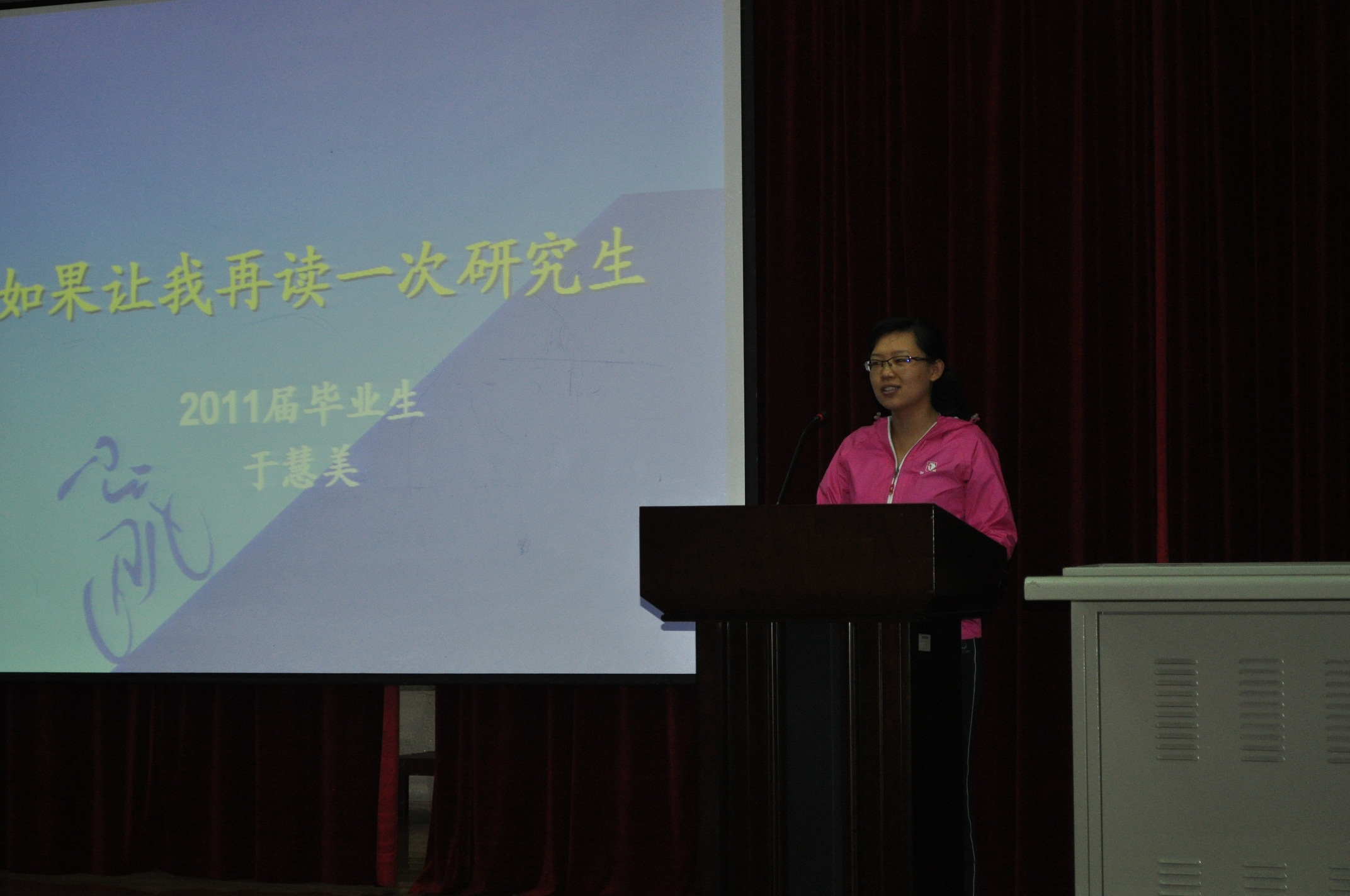 于慧美以“如果让我再读一次研究生”为题,以自身经历告诉同学们研究生必备的四个条件:顽强的心态、扎实的基本功、钻研的精神、明确的目标,让同学们深切领悟到眼界和态度决定命运。