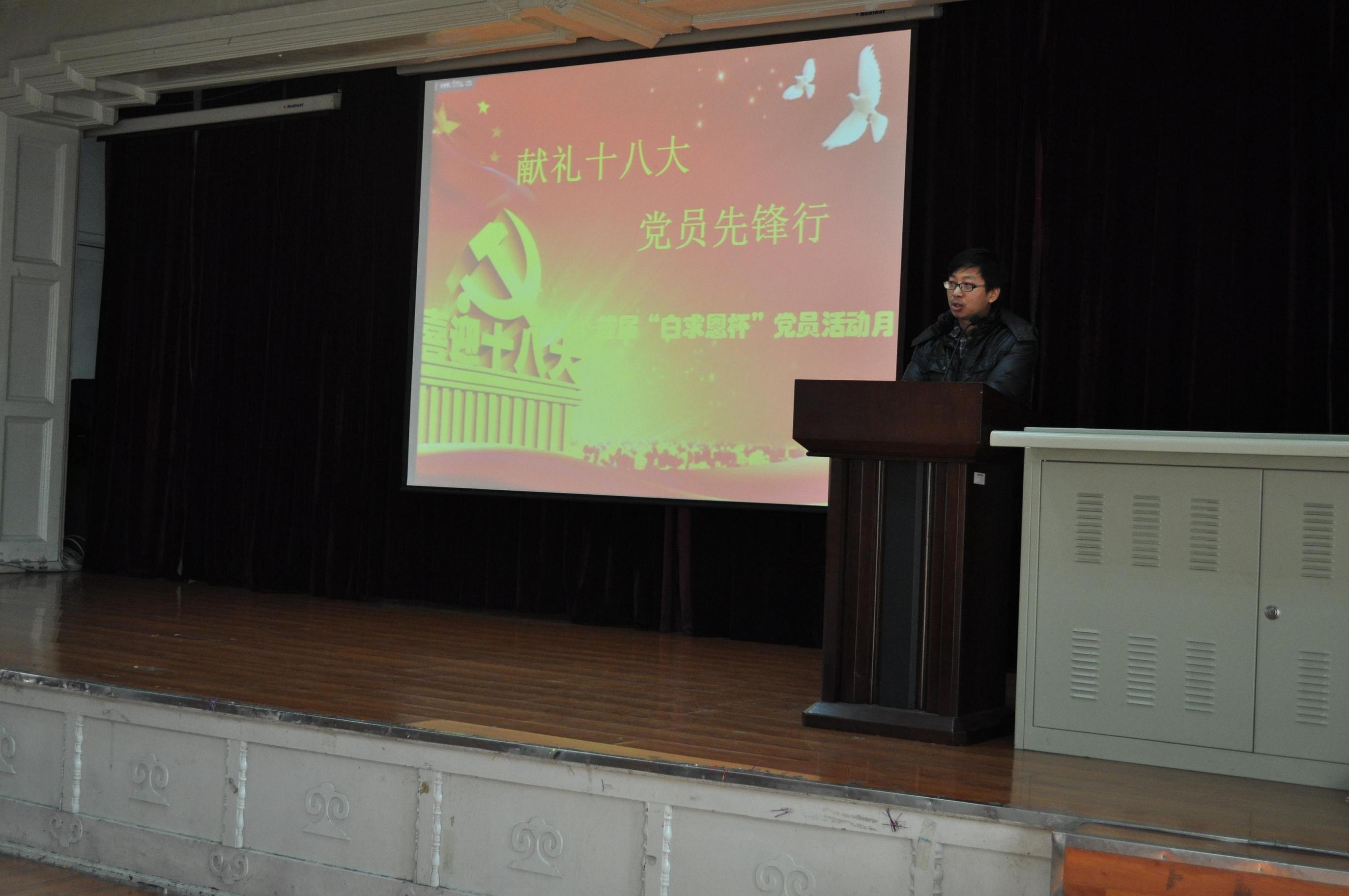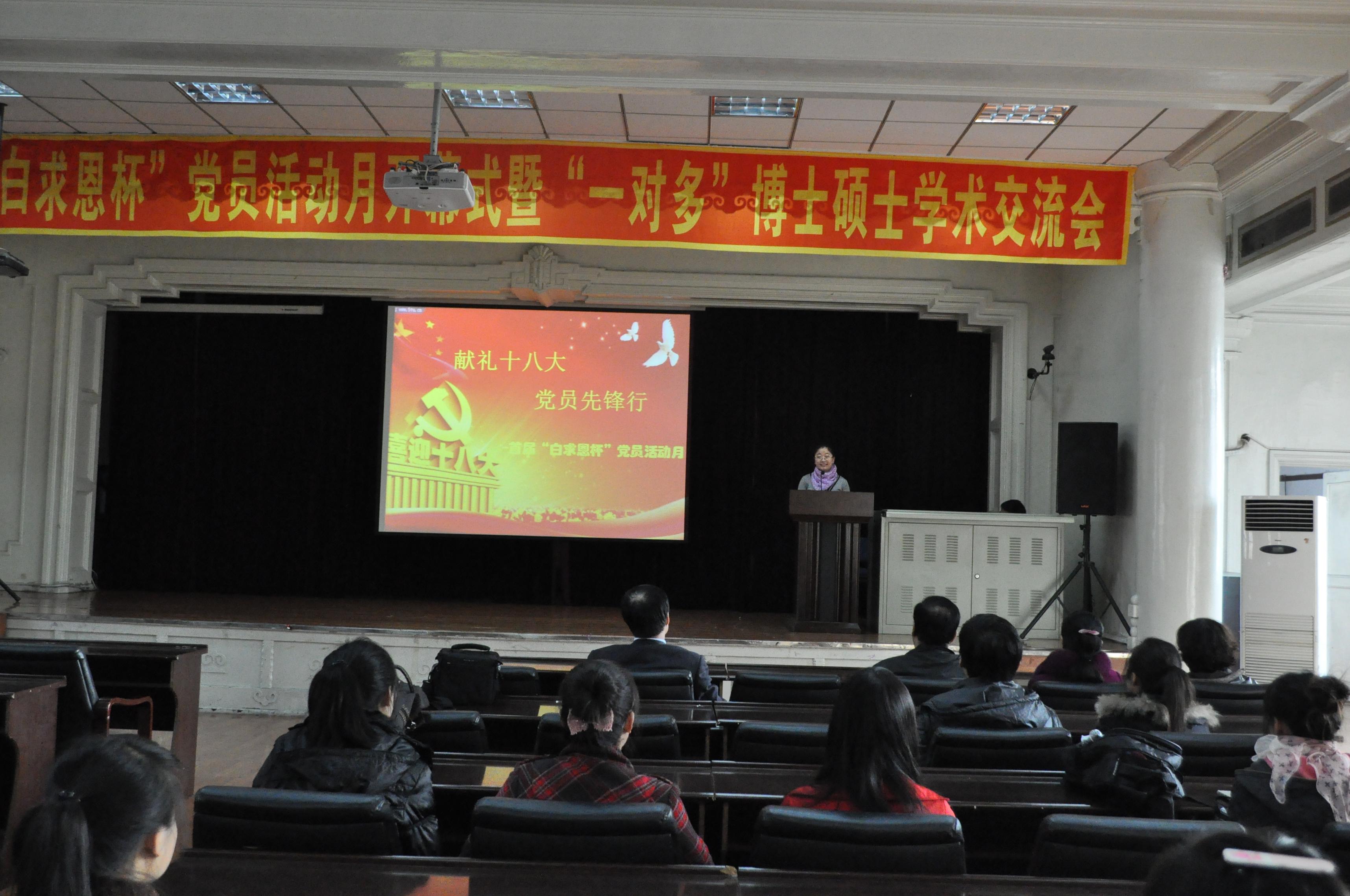 2012级硕士、博士党支部主办的“献礼十八大,党员先锋行”系列活动之首届“白求恩杯”党员活动月开幕式暨博士硕士学术交流会在基础楼二楼多功能学术报告厅举行。豪神娱乐城