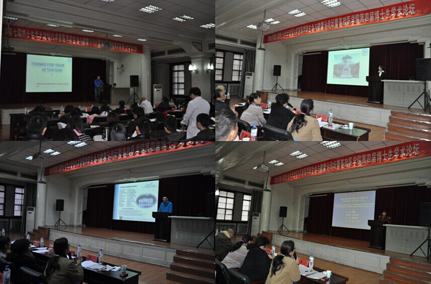 副院长陈霞、副院长王放、党委副书记费淑波、学术委员会主席赵华、病理学系博士生导师刘晋宇、免疫学系博士生导师台桂香出席了论坛,150余名研究生参加了论坛。论坛由分子生物学教研室副教授孙巍主持。