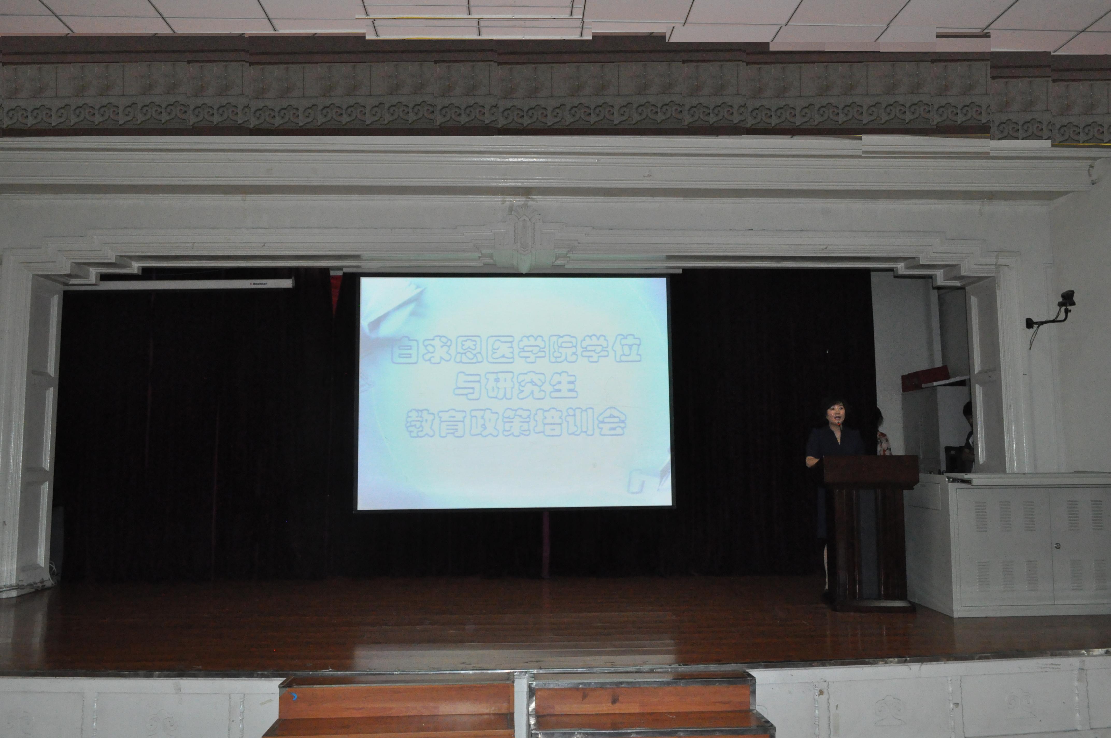为使2012级研究生尽快的了解研究生相关政策,以便更好的规划研究生生活,8月27日上午,白求恩医豪神娱乐城 组织新生在基础楼二楼多功能学术报告厅召开了学位与研究生教育政策培训会。研究生办公室主任黄梅就奖学金评定标准、学术诚信要求等相关政策为新生进行详细讲解,并介绍了近期即将开展的活动,同时提醒新生学习、生活应该注意的细节问题。之后,研究生助管李敏介绍了如何使用研究生管理系统以及选课的注意事项。2012级全体硕士、博士研究生参加了培训会。