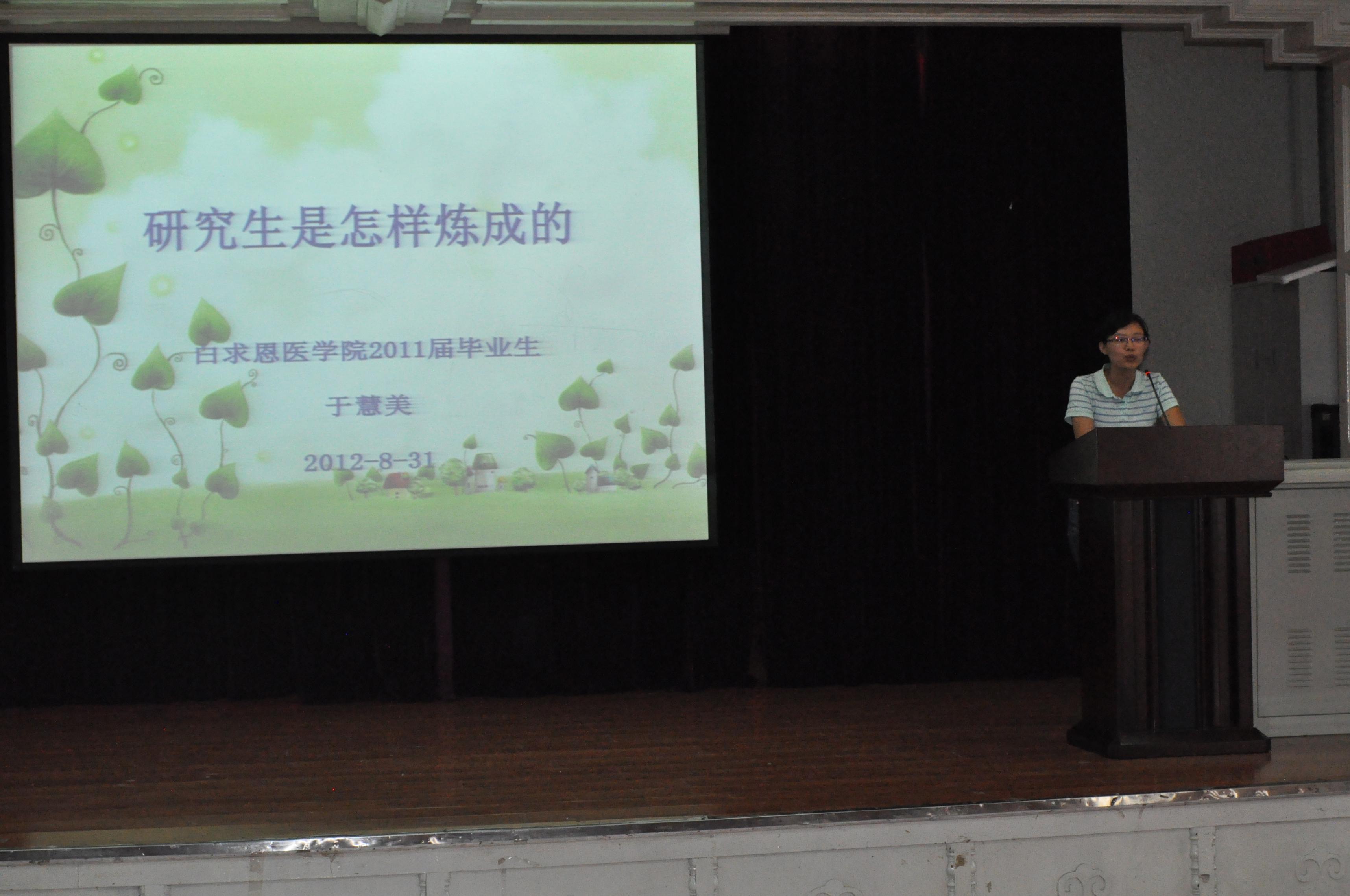 邀请了2011届优秀博士毕业生-—于慧美、徐慧在基础楼二楼多功能学术报告厅进行了研究生学术经验报告会。白求恩医豪神娱乐城