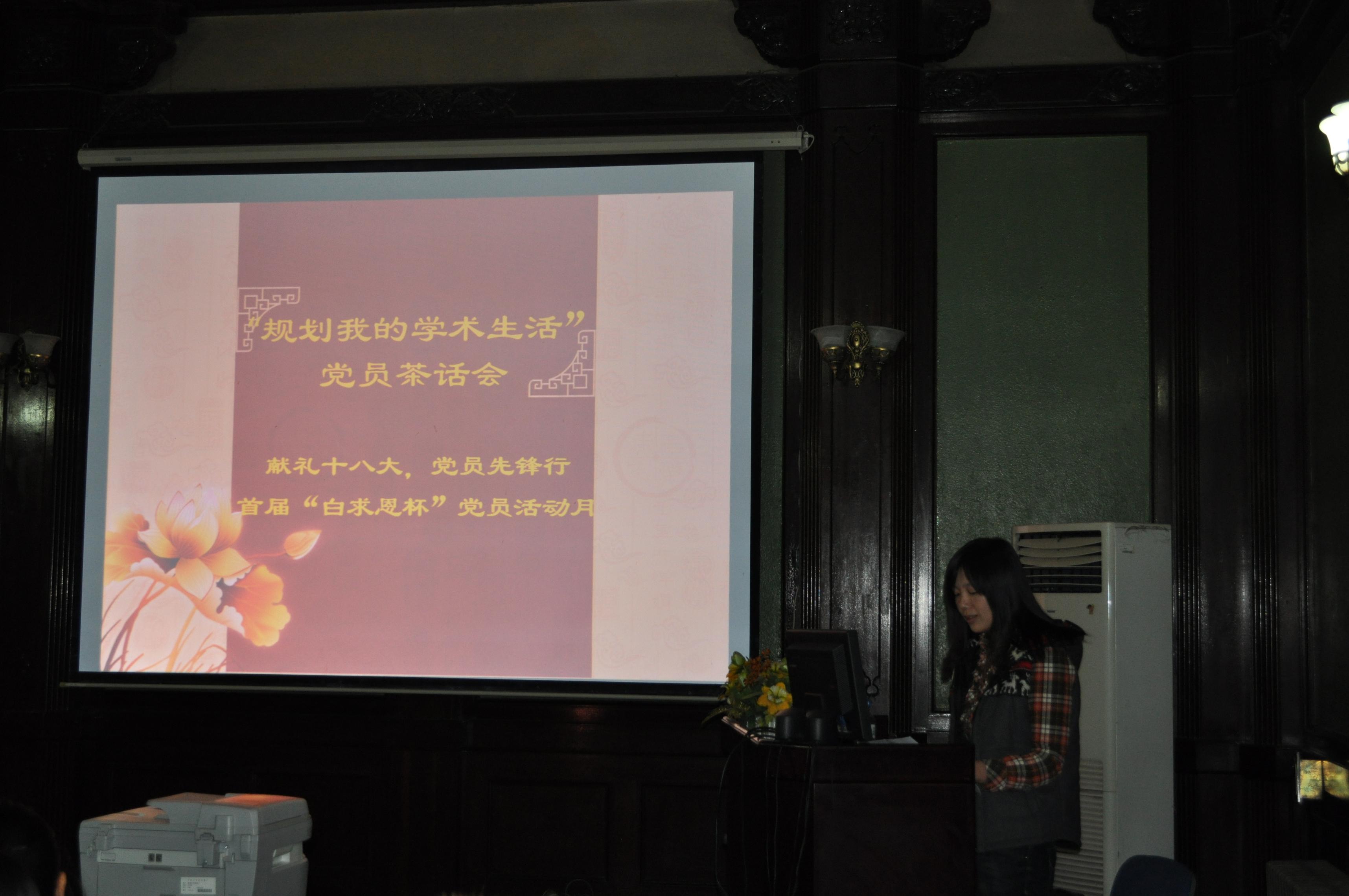 2012级硕士、博士党支部主办的“献礼十八大,党员先锋行”之“规划我的学术生活”师生党员茶话会在基础楼四楼学术报告厅如期举行。会议邀请白求恩医豪神娱乐城