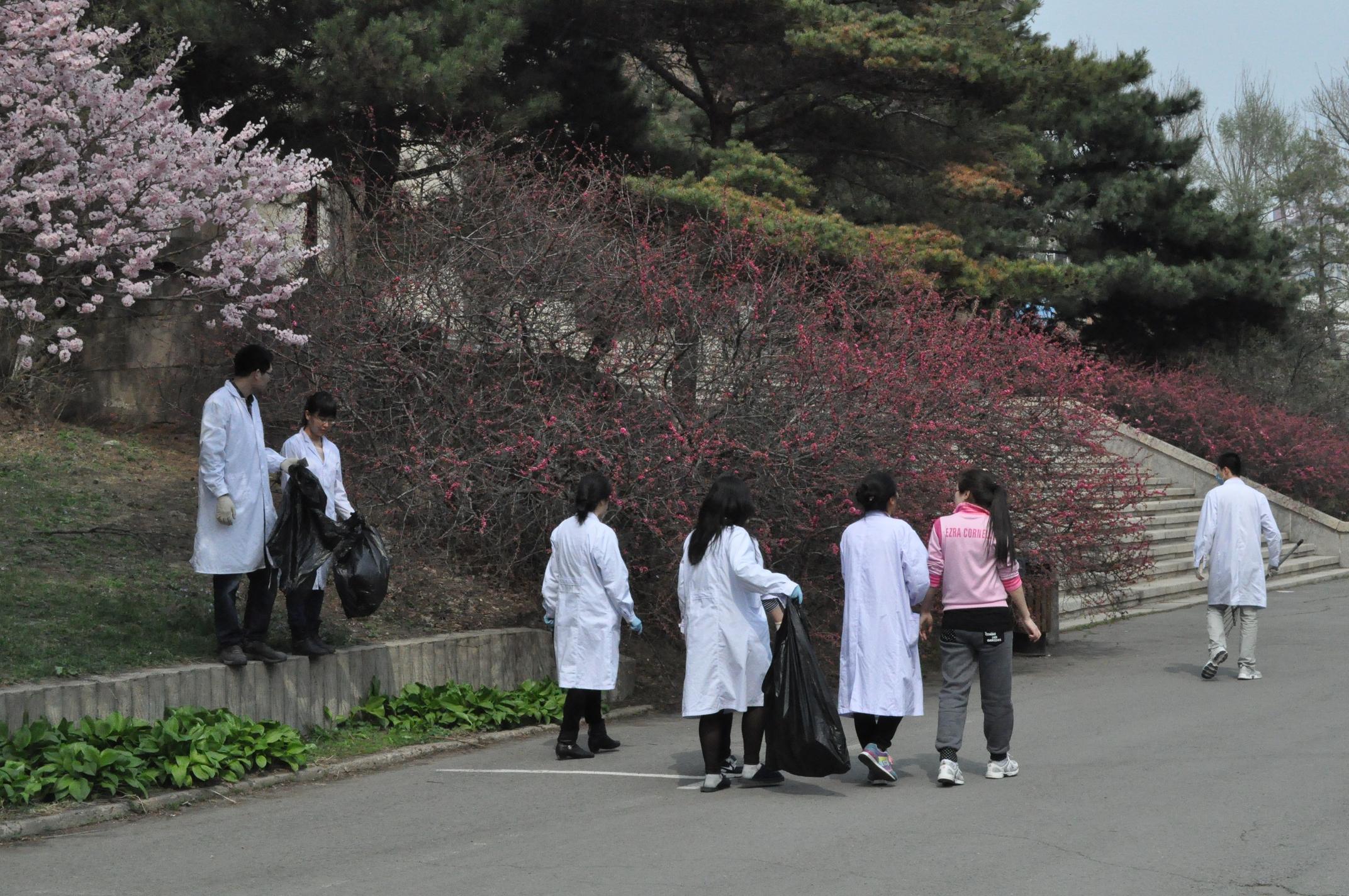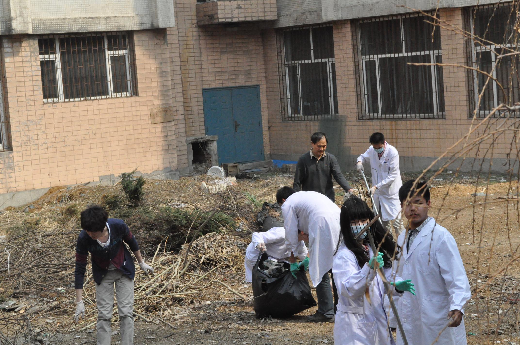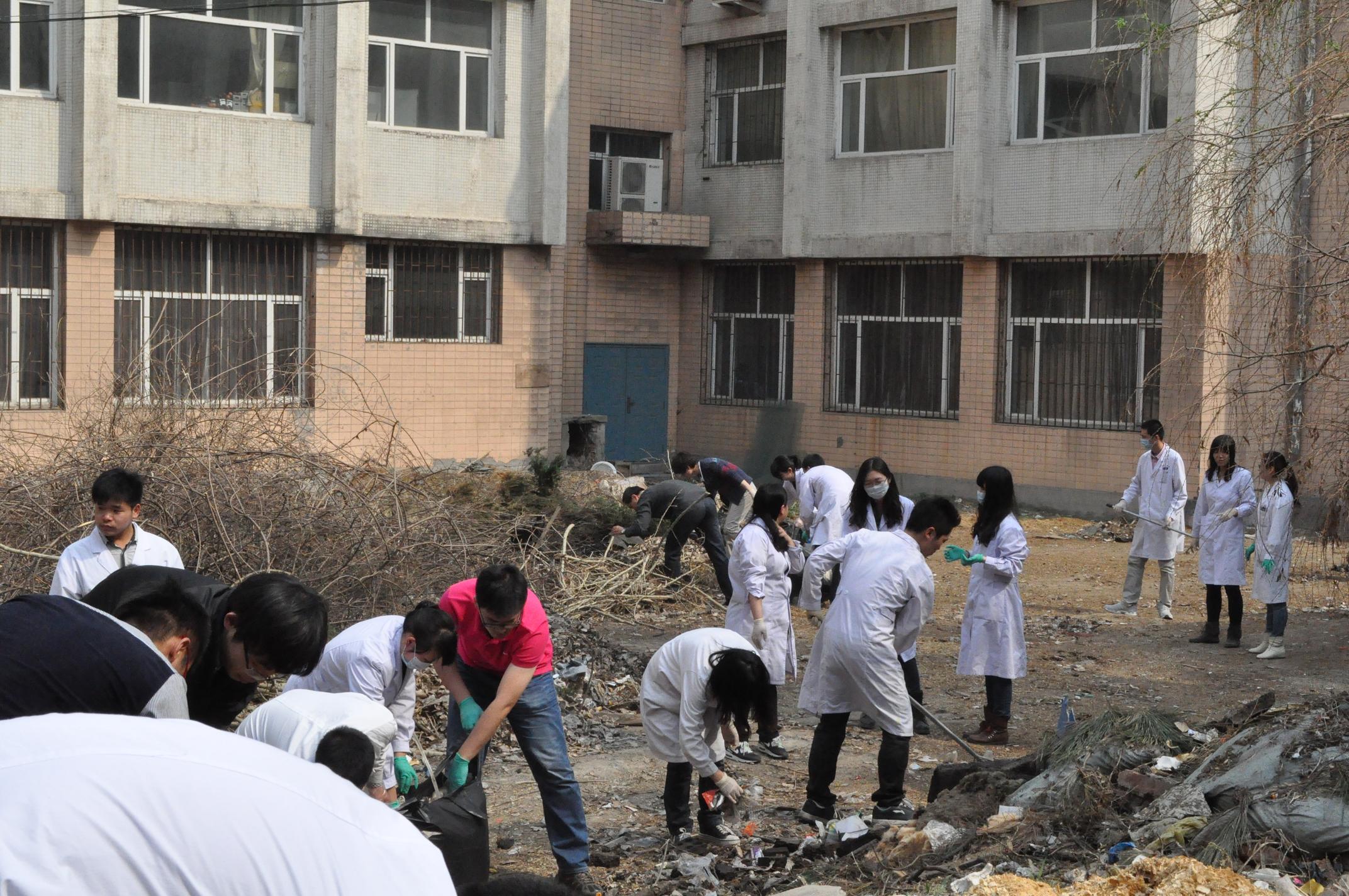 办公室王松老师的带领下,研究生分为三组,分别将基础楼内外卫生进行了彻底清洁。首先,清理了基础楼院内草坪上的白色垃圾、杂草,并将基础楼后垃圾站周围进行了打扫。之后,参加活动的研究生以班级为单位,分别深入各学系、实验室清洁门窗和玻璃。